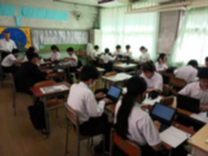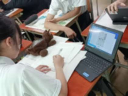 紙面に原稿をまとめますが、学習端末も活用して、記事を作ります。