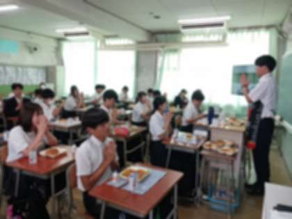 今日の献立は、ミニコッペパン・牛乳・カレースパゲティ・グリーンアスパラガスとキャベツサラダ・発酵乳です。