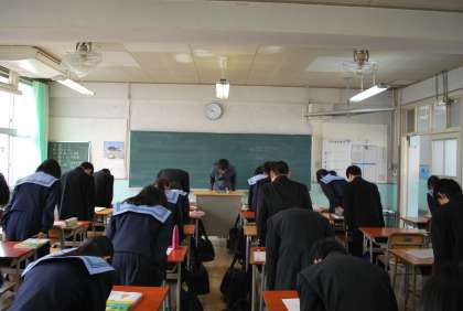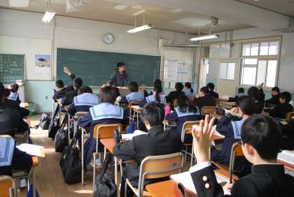 今日の1時間目は国語、谷川俊太郎の「朝のリレー」を勉強しています。