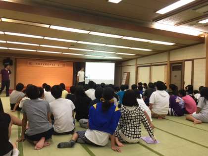 夕食を終え、レクリエーション大会です。 前半は班対抗クイズ大会!