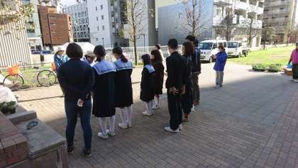 本校学校元気アップ事業が、家庭科部と浪速区の種花事業と協同で学校近隣の花壇に花の苗植えを行いました!(OCAT南側花壇)