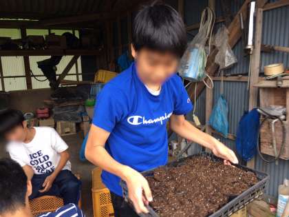 朝は、カボチャの種植えなどをさせていただき、おやつにクチナシ、青海苔、小海老などを入れた手作りアラレをいただきました!