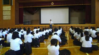 毎年、全校で平和について考える大切な日です。今年は、3年生の修学旅行での平和学習の取り組みの発表と大阪大空襲に関するVTRを見て、戦争の恐ろしさ、命の尊さ、平和の大切さをあらためて感じました。暑い体育館の中でしたが、戦争を二度とおこしてはいけないと強く感じる取り組みとなりました。