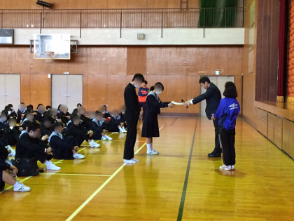 全校集会で改めて表彰されましたので、報告します。