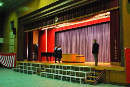 放課後に残り、答辞の練習をするふたりとそれを見守る3年所属の教員