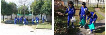 本校では、普段の取り組みとしてPTAと共同で毎週金曜日の朝、学校周辺の清掃活動を行っていますが、今日は、清掃エリアを拡大し、学校の隣にある浪速公園の清掃を行いました。