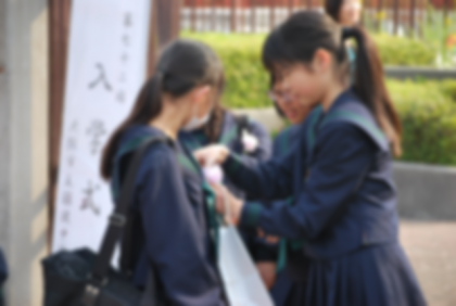 写真は、登校してきた新入生にコサージュをつける生徒会役員生徒