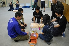教職員の校内研修「心肺蘇生、AED使用法」が行われました。
