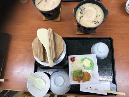 鶏そぼろ釜飯、博多ラーメン、かしわ明太マヨネーズ
