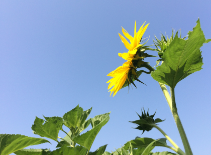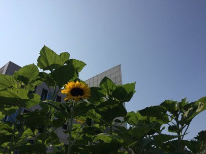 1学期期末テスト初日の今日、開花している いのちのひまわり を見つけましたのでお知らせします!