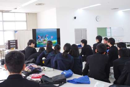 卒業式前の集会で中学校生活の思い出を振り返りました。