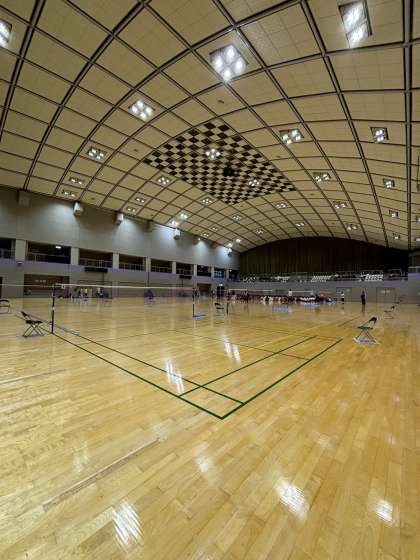 本日は、四條畷市のコートが10面ある天井もとても高い『四條畷サンアリーナ』にて16校集まって交流練習試合です。