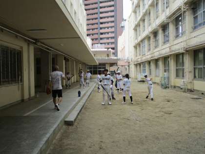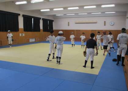 本日は、雨天のためいつも練習している浪速グランドが使えません。