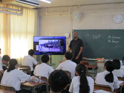 今日の英語は、C-NETのGardener Dwayne先生が授業を受け持っています。ほとんどすべての会話を英語で行っています。