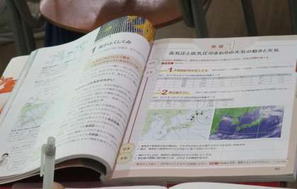 説明の途中で生徒端末から気象庁にアクセスし、気象情報をリアルタイムで見ることが出来ます。