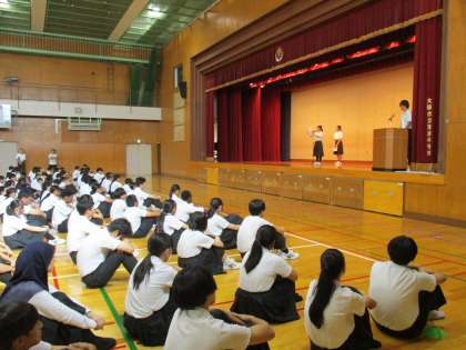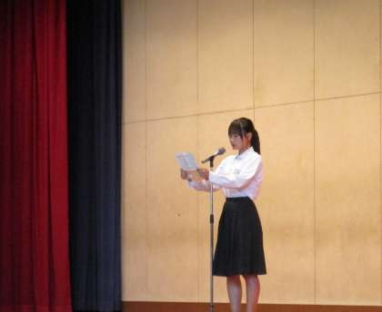 体育館の舞台の上で、全校生徒の前で話をすることは、とても緊張したと思います。