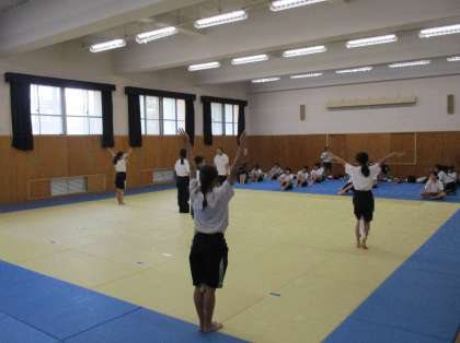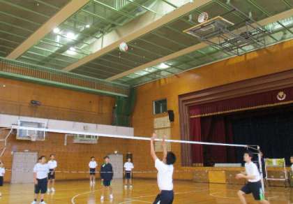 男子はバレーボール、女子はマット運動です。