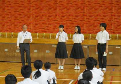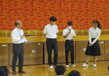 本日の全校集会では、文化活動発表会にむけて「ヒーローインタビュー」を行いました。