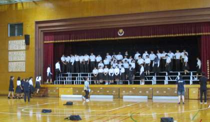 学年集会の時間を利用して、舞台への入退場の練習をしました。