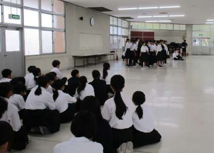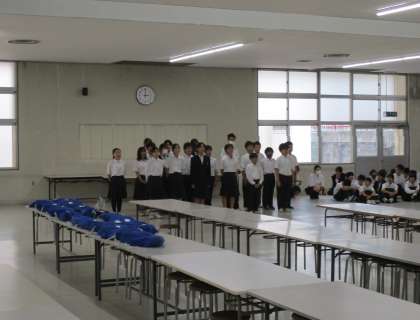 割り当ての関係で場所は食堂ですが、「平和」をテーマにした発表が進んでいます。