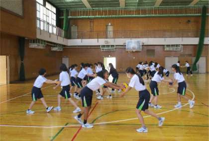 1・2年生の復習も兼ねて、アンダーハンドパスの形を確認しています。