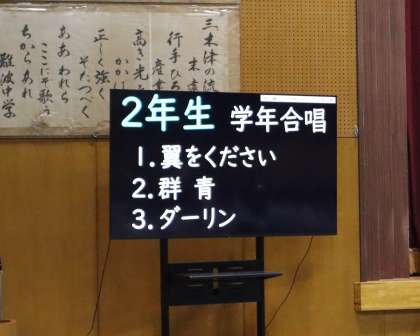 学年合唱による発表で、「翼をください」・「群青」・「ダーリン」を歌いました。