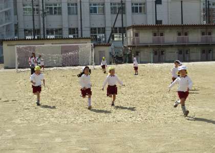 中学校のグランドで、思いっきり走ってしんかり運動をして帰りました。