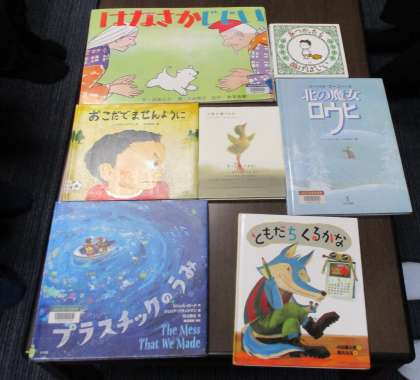 朝学活の時間に、ブックトーク(絵本の読み聞かせ)を行いました。