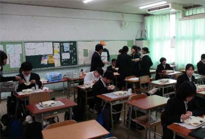 3年3組では、4人で「いただきますの儀」が行われ、楽しい雰囲気で食事がすすんでいます。