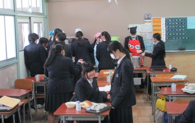 配膳時には、からあげの美味しそうな香りが漂い、生徒たちもうれしそうです。