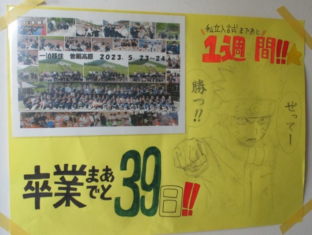 廊下には、新たな卒業までめくらないカレンダーが掲示されました。