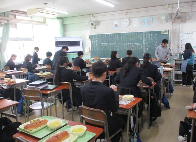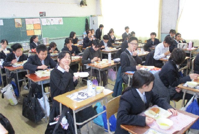 生徒のランチョンマットは、それぞれ個性的で、給食の時間も楽しくなります。
