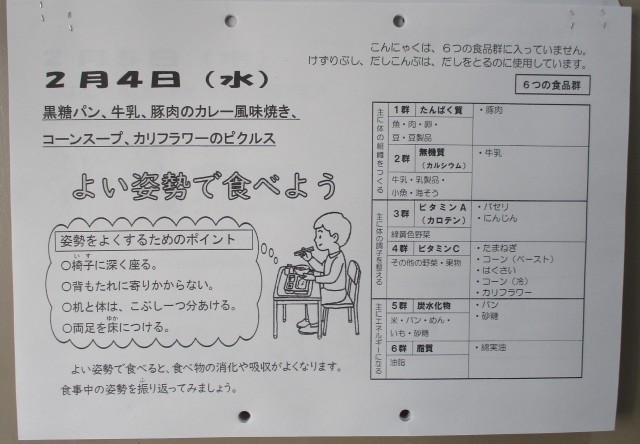 今日の献立は、黒糖パン・牛乳・豚肉のカレー風味焼き・コーンスープ・カリフラワーのピクルスです。