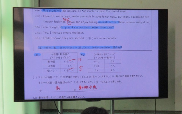 大型モニターを活用し重要なポイントは色付けして強調し、