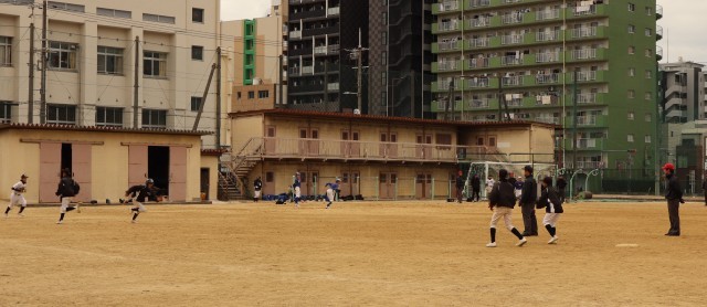 大阪市中学校体育連盟軟式野球部の審判講習会を難波中学校の運動場および浪速公園グランドを使って行いました。