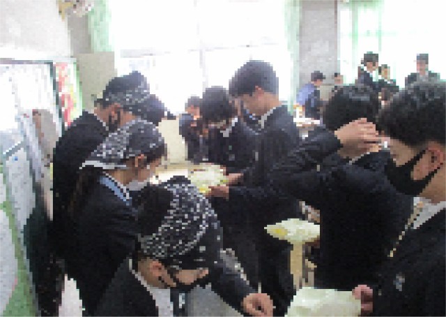 配膳もスムーズに行われています。写真の生徒は、はじめから牛乳2本です。