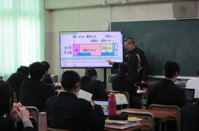 「開国」か「戦う」か、生徒自身が当時の将軍の気持ちになっていろいろと考えます。