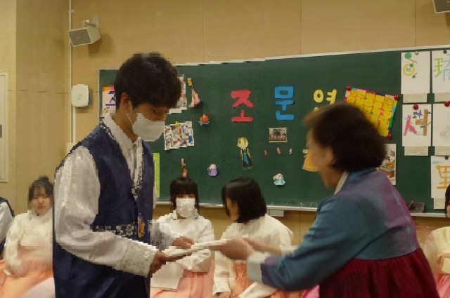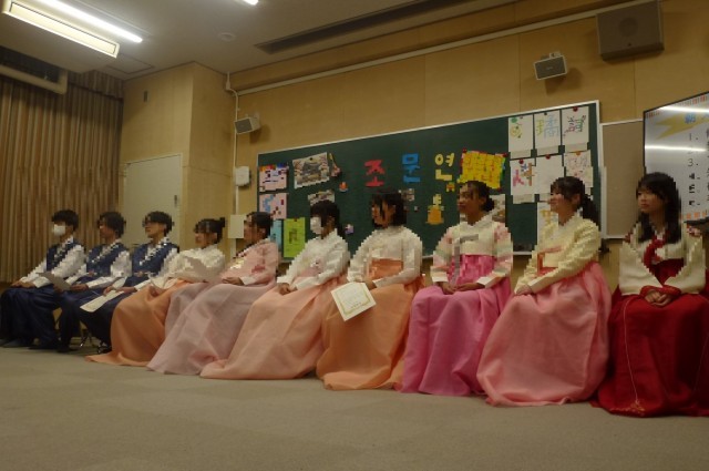 式の前に、かるた大会の表彰を行いました。その後、修了証の授与をソンセンニムからしていただきました。