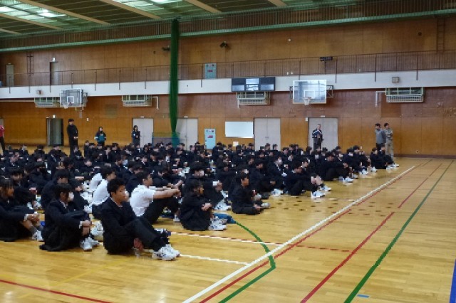 緊張しながらも、李候補者と応援演説者は、体育館の舞台の上で、しっかり話をしてくれました。