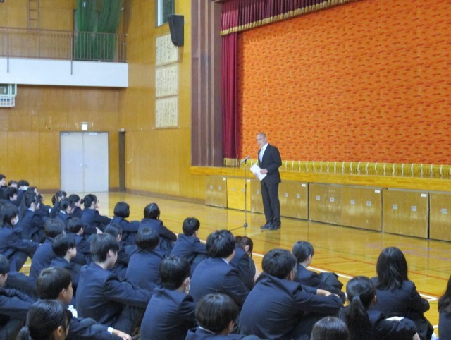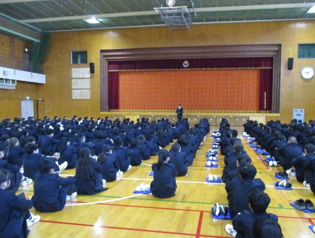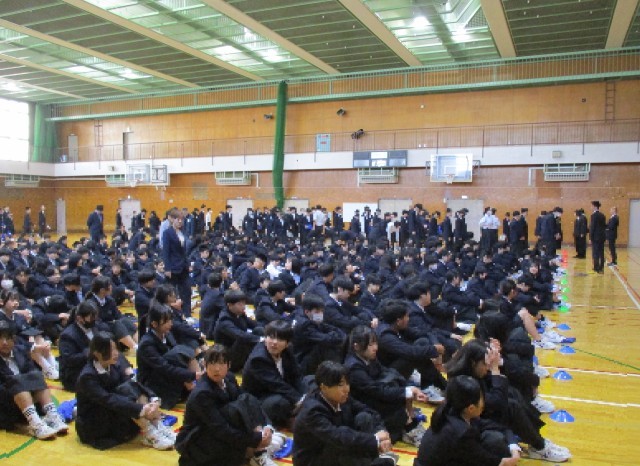 1年生は緊張した面持ちで登校し体育館での始業式に臨みました。