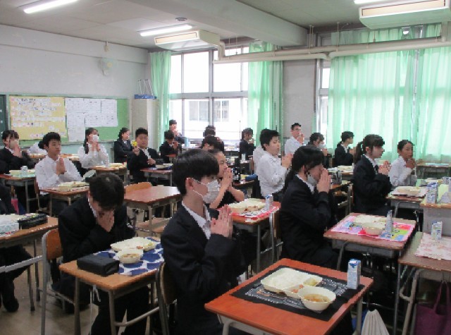 1年生も配膳に少し慣れてきたようです。みんなそろって「いただきます」。