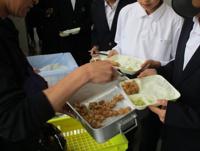 鶏肉のたつたあげは大人気です。おかわりの列ができますが、すぐに完食となりました。