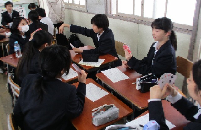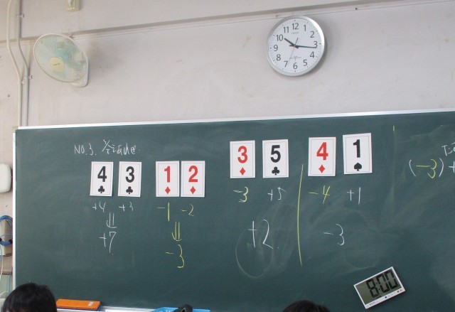 トランプを使って、加法・減法を学びます。