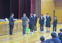 全校集会で、学校図書館から本を借りた冊数の多い生徒を表彰しました。本が身近にある...