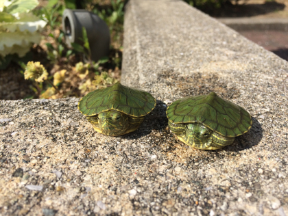 本校 元気アップ事業の花壇を耕していると、ひょっこりチビ亀が現れました! ...