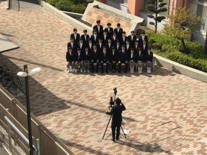 中学校の学級写真撮影。