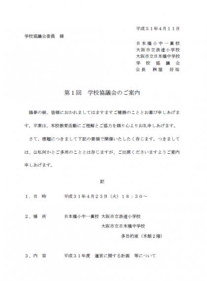 第1回学校協議会のご案内