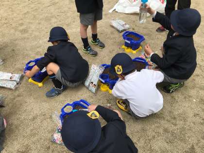 アサガオの種を植えています。