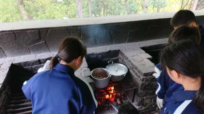 生徒たちが協力している姿。