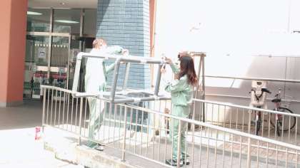 6月7日(金)に中学校運動会が実施されます。今日は、管理作業員さんが入退場門の点検を行ってくださいました。